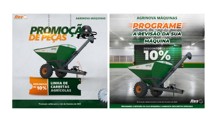 Descontos especiais em peças e serviços da linha de carretas agrícolas para a sua máquina Stara ter o melhor desempenho no campo!